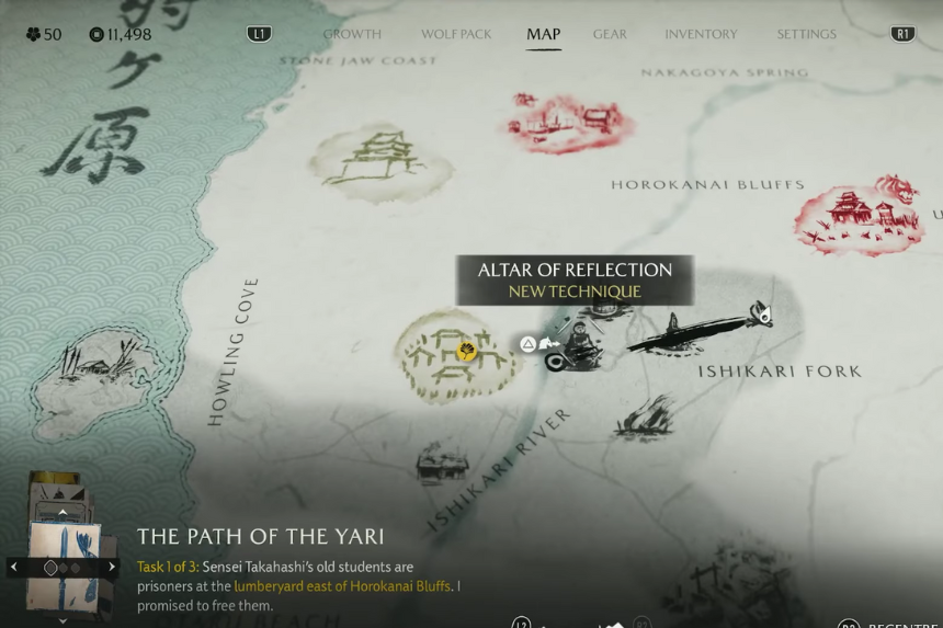 To complete the ritual, simply bow down by swiping down on your touchpad, and you’ll unlock the altar. Altars of Reflection are hidden spots scattered across the map where Atsu can take a moment to pause and reflect. When you visit one, you get the chance to learn a new Technique pick whichever one you want. If you manage to find all the Altars of Reflection across Ezo, you’ll earn the Moments of Reflection trophy. To get it, you need to discover a total of 30 altars.