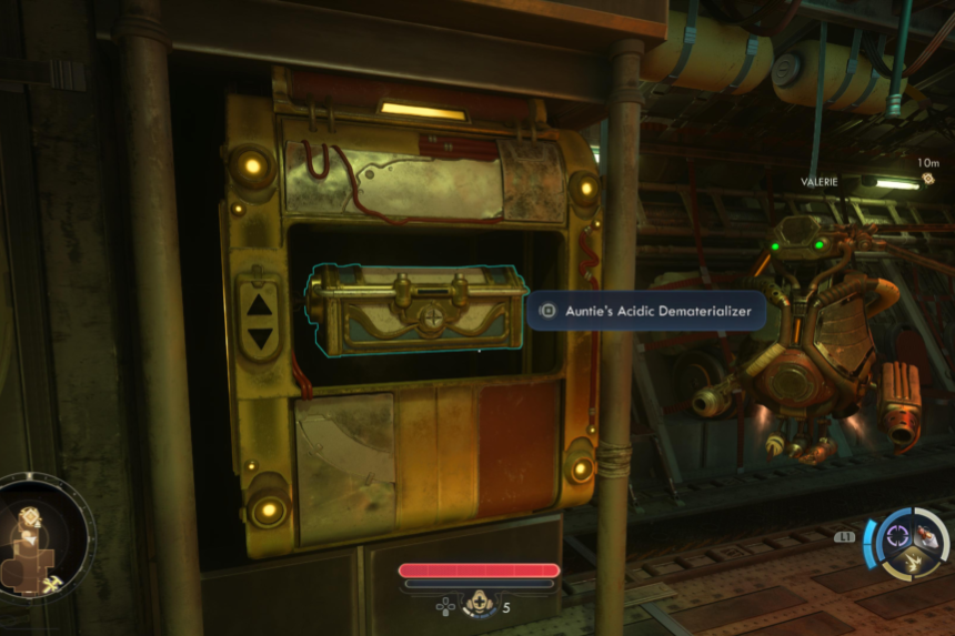Go to the dispenser and choose “Open Lockbox.” You will receive the Auntie’s Acidic Dematerializer within, which is a tool to dematerialize objects and to open future upgrades.