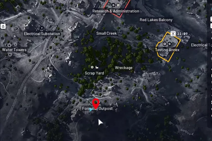 To start the quest, you will first need to go to the Dam Battleground. Once you are there, make your way to the Formicai Outpost, located on the southern edge of the map just below the Scrap Yard and Wreckage areas. Head up the hill until you spot a small shed.