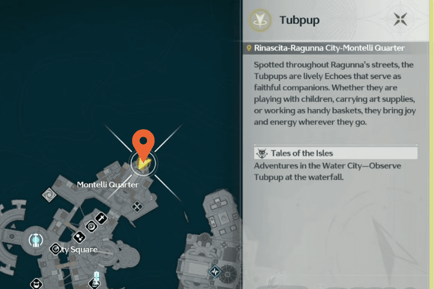 In the center of the Montelli Quarter’s bathhouse, you’ll find Tubpup Echo gazing out towards the horizon. Jump onto the platform opposite him and interact with the highlighted blue area to add another item to your ‘Adventure in Water City’ collection.
