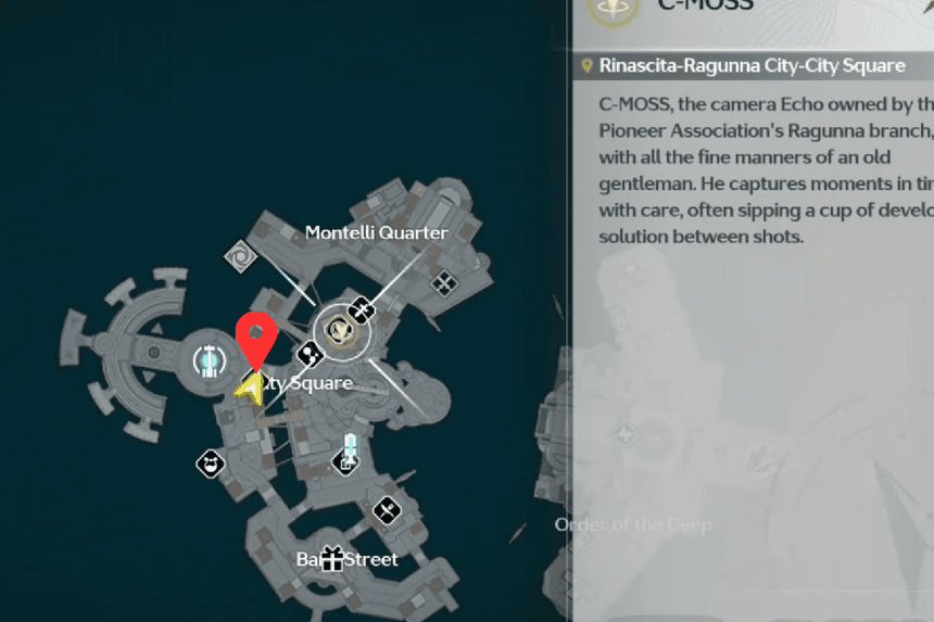C-Moss is a photography Echo that you can find in the Raguuna City Square, right beside the Pioneer Association NPC. Simply interact with C-Moss, and it will start striking poses for you to capture. Once you do, you’ll receive the Adventure in Water City entry.