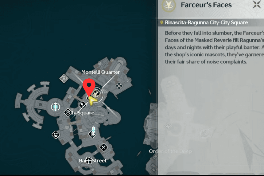 You can encounter Farceur’s Faces by progressing through the main story or by simply walking into the City Square and heading to the left. You won’t be able to miss them – they’re two enormous singing heads! Just watch them perform to add them to your collection.