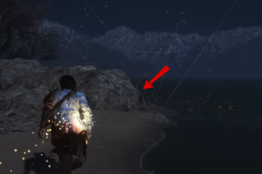 Near the beach of Lake Suigutsu in the Wakasa region, you will find a small island near the Hiruga Bay. Head towards the rock, and you will find the Riddle of the Arch at the foot of the rock.