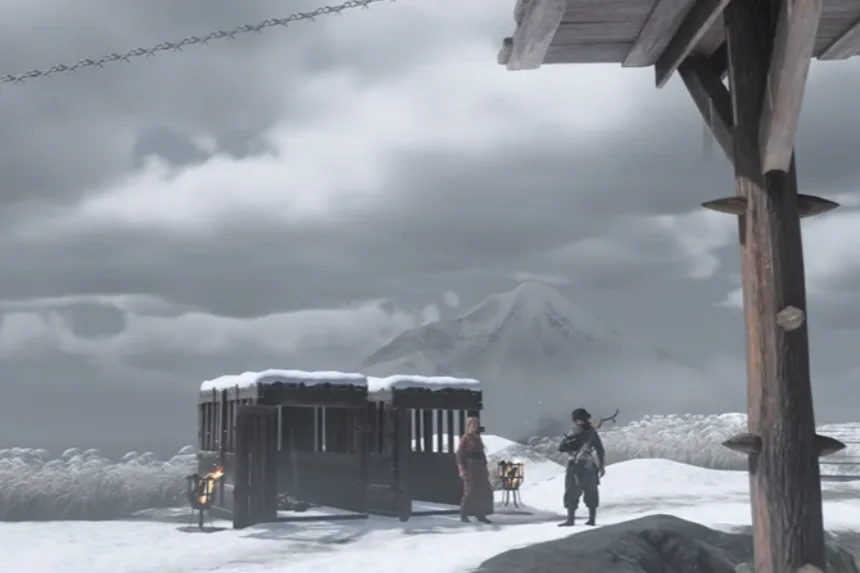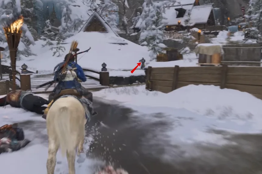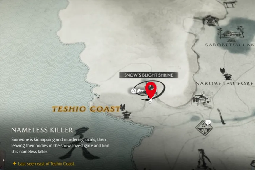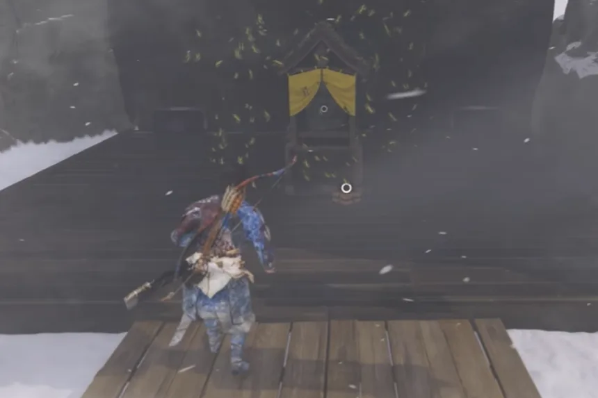 Enter this hidden camp via the “Snow’s Blight Shrine” in northwest Teshio Ridge. Defeat the enemies and free a hostage to start the shrine puzzle: