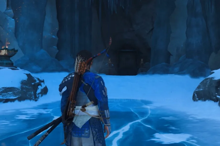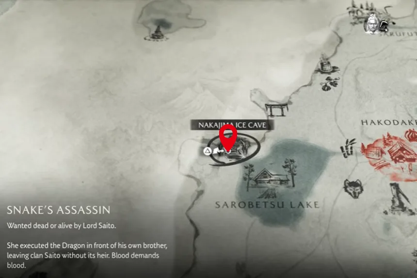 Head to the “Nakajima Ice Cave” northwest of Sarobetsu Lake. The gate is locked. Rotate the right fox statue to the right and the left fox to the left (both facing away). A crawlspace opens.