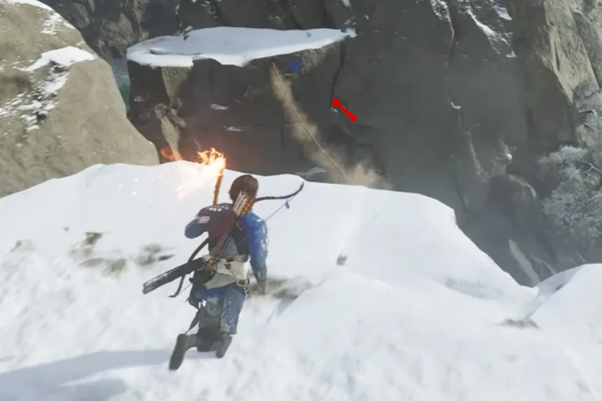 Now, move forward and climb up the wall. At the top, you will reach the camp. Here, you need to clear the enemies. On the right, light a fox next to a broken bridge to unlock a rope, and cross it to reach another area. After fighting more enemies, light one last fox at the cliff. That unlocks the final rope leading to the altar and puzzle box.