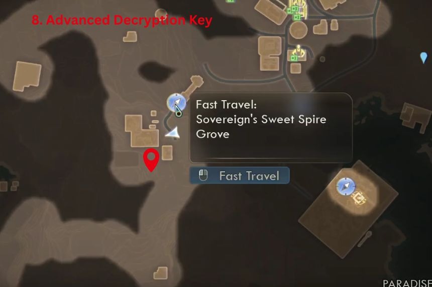 There are two separate Advanced Decryption Keys hidden in Sovereign’s Sweet Spire Grove. Search the grove thoroughly one is near a crate, and another near a small camp setup.