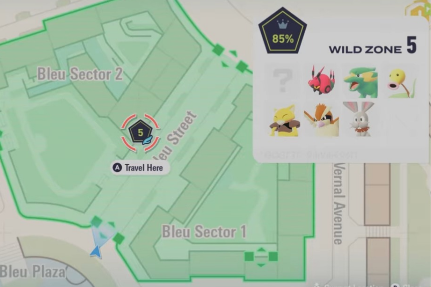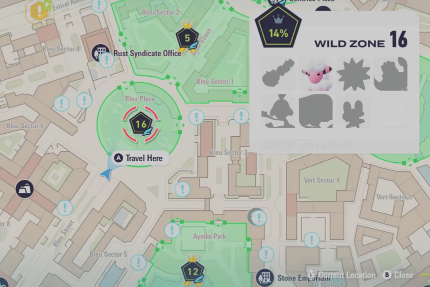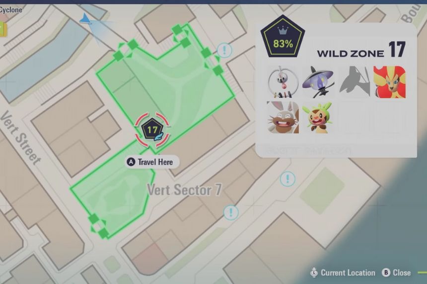 Wild Zone 1 becomes available once you reach Main Mission 5 in Pokémon Legends: Z-A. You can find it along South Boulevard in the Vert Sector. This area is home to a variety of wild Pokemon, and the best part is they can appear at any time of day. So, no need to worry about waiting for morning or night spawns here.