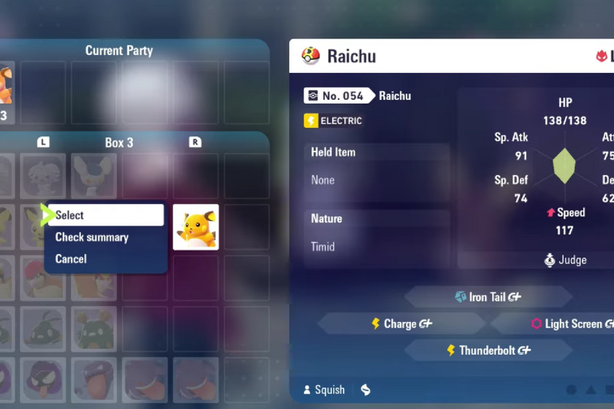In Pokémon Legends Z-A, Raichu can only be obtained by giving a Pikachu a Thunder Stone. It doesn’t appear naturally in the wild. Raichu has strong offensive stats, with 60 HP, 90 Attack, 55 Defense, 90 Special Attack, 80 Special Defense, and an impressive 110 Speed, totaling 485 combat points. Its combination of speed and power makes it an excellent choice for trainers who want a fast-hitting Electric-type.