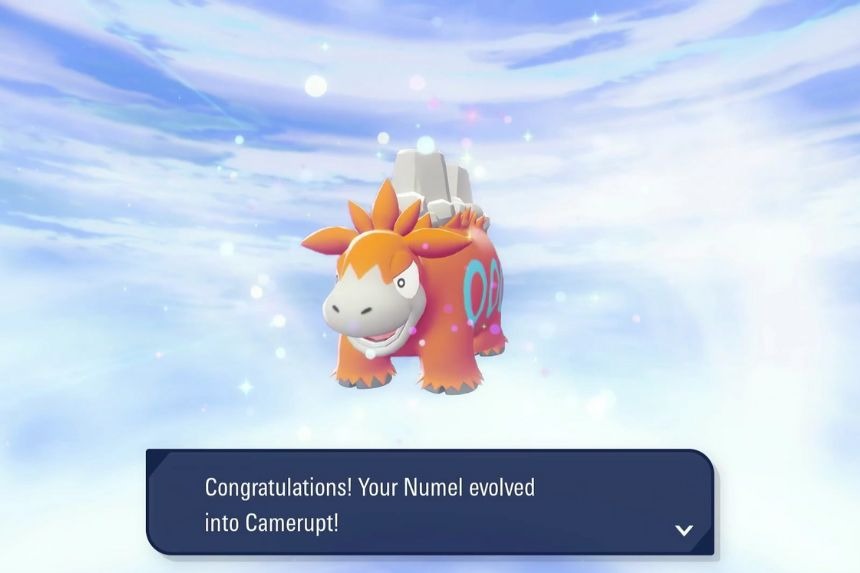 Camerupt has volcanoes on its back that erupt roughly every 10 years, or instantly if it gets really angry. You can find it in Wild Zone 8 after completing Main Mission 9: Chase That Mysterious Pokémon. It appears as a red-eyed Alpha Pokémon in the middle of the zone. Camerupt evolves from Numel at Level 33 and has 70 HP, 100 Attack, 70 Defense, 105 Special Attack, 75 Special Defense, and 40 Speed, for a total of 460 Combat Points.