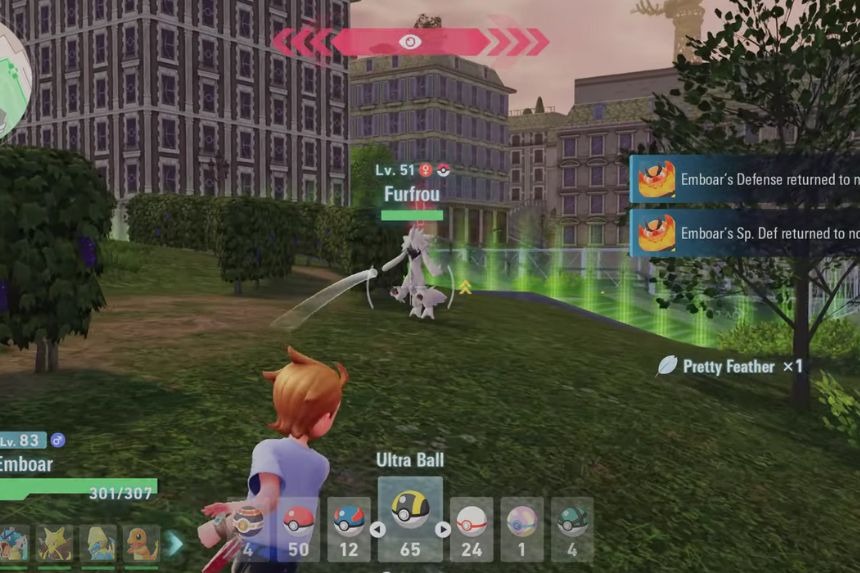 The rain is also key to finding Goomy in the first place. It only spawns during rainy weather, so keep an eye on the skies while exploring Lumiose City. It doesn’t appear inside Wild Zones, but you can spot it in a few city locations. One spot is on the rooftop in Vert Sector 9, across from the Stone Emporium.