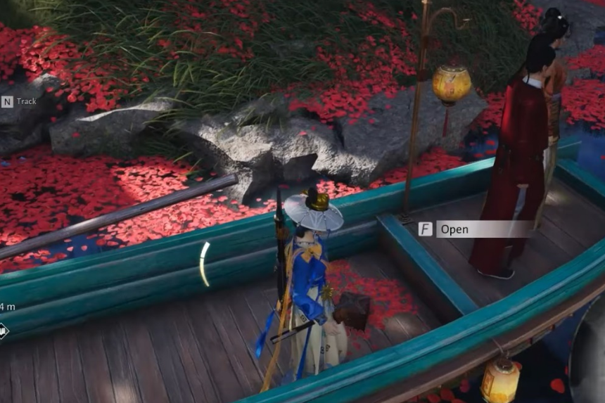 Getting the Peach Blossom Pendant is pretty straightforward. Start by going to the location shown on the map above and you’ll see a lake. There’s a boat with two lovers onboard and you’ll find them conversing. Going onboard and simply listening to their conversation will grant you the Peach Blossom Pendant.