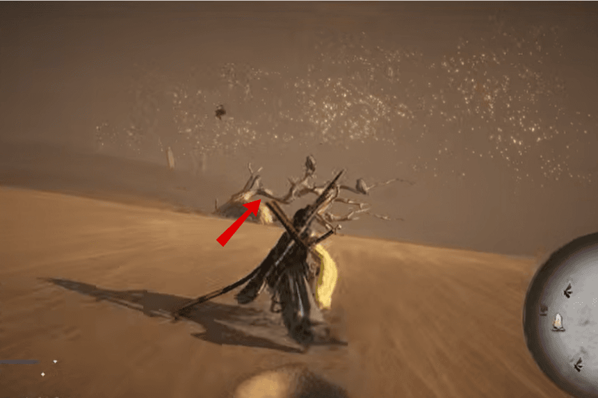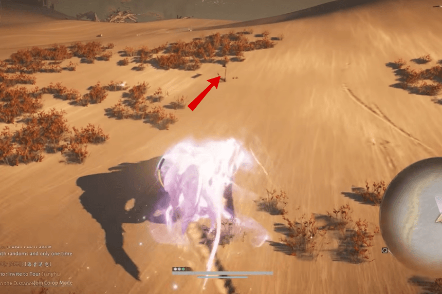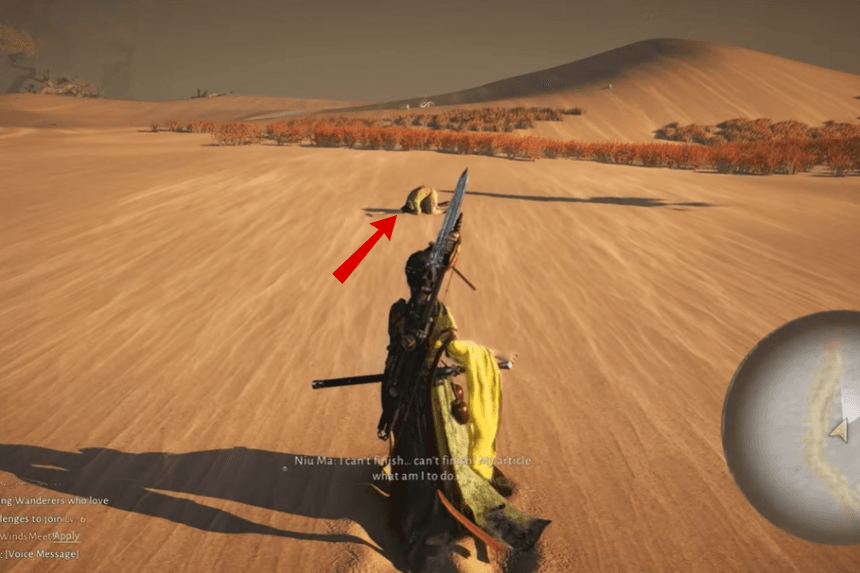 In the desert area, near the big tree, you will find the treasure in the sand. The treasure will be walking aimlessly, and when you reach towards it, it will stop moving. So, you need to chase it quickly and get the rewards.