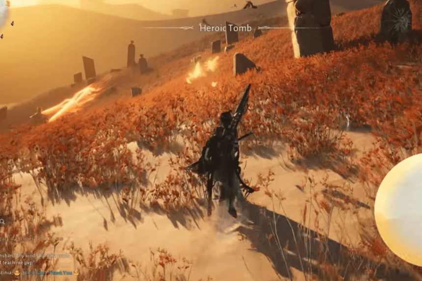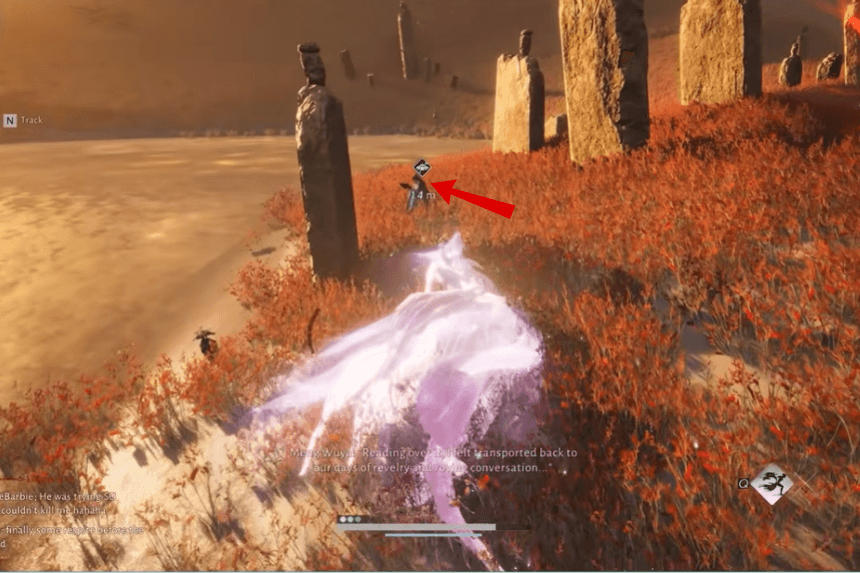 Go towards the stone pillars near the lake. As you reach the red grass area, you will find the walking treasure nearby. Catch it as soon as possible to get your treasure and collect your rewards.