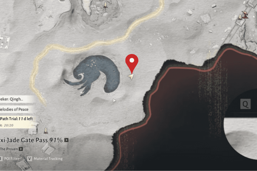 In the southeast part of Jade Gate Pass, you will find the oddity in the middle of the desert. Wait until the Shadowfin swims close to the pile of rocks. When it gets near, use Reverse to trap it. This will let you collect the oddity.
