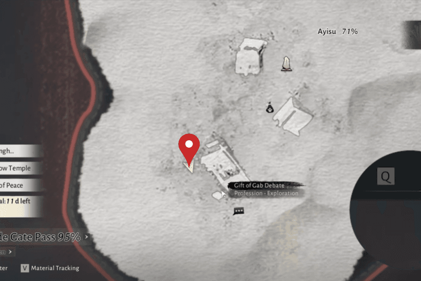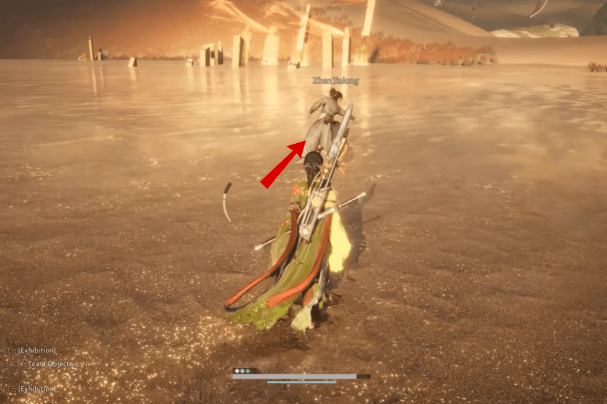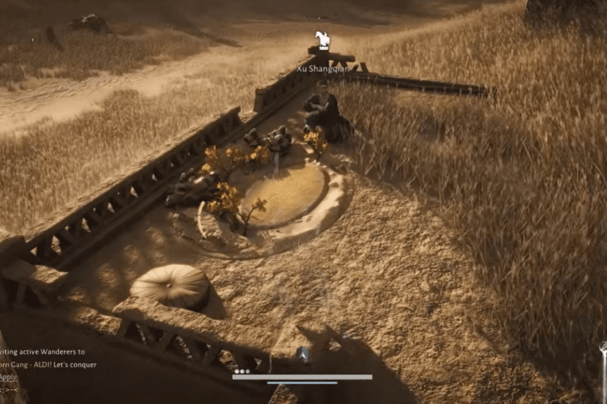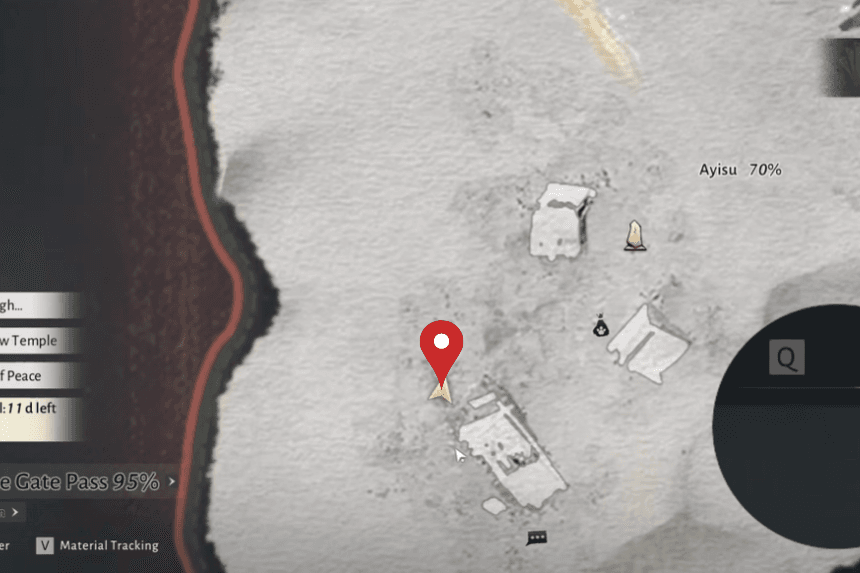 First complete the A Mirage Of Wine Wandering Tale to make the NPC come here. Talk with the NPC who is working on the pillars to Ayisu’s Water.