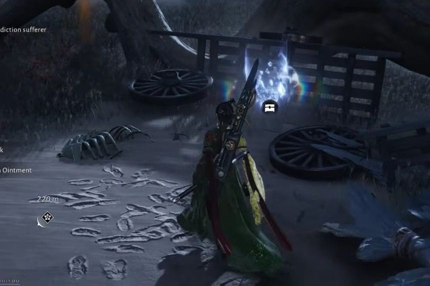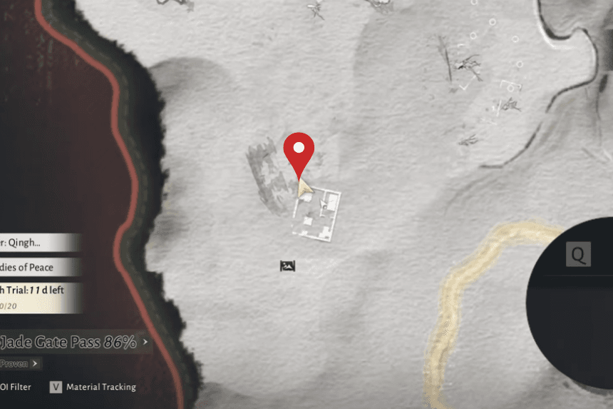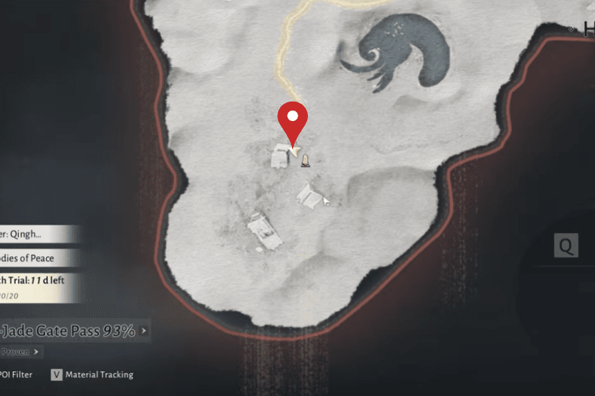 The camp is found in the southern part of Jade Gate Pass. Defeat all the enemies inside the camp and then loot the chest near the broken cart.