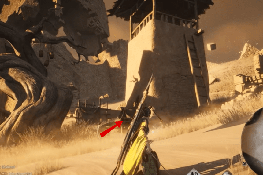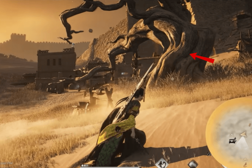 Go towards the north side of the lake to find a single tree in the desert. Under the tree, you will find a camp, so defeat all of the enemies to collect the rewards.