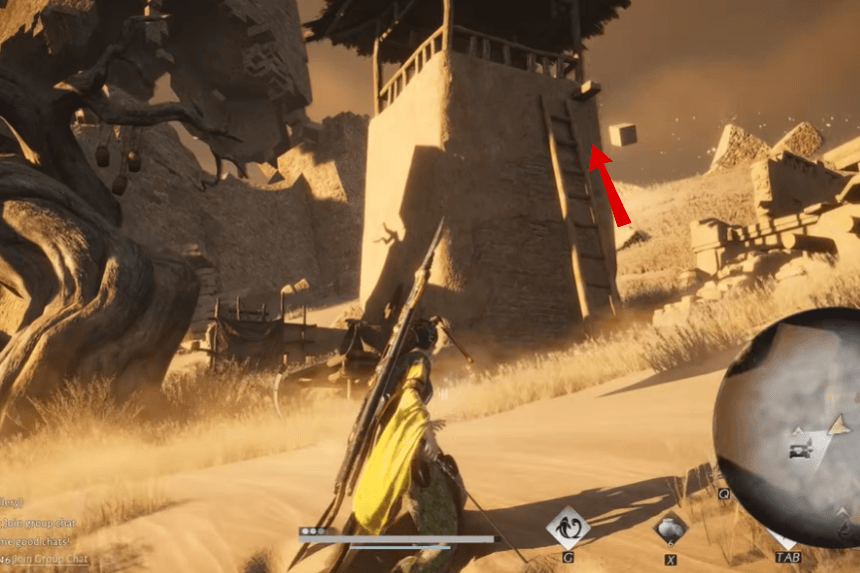 Climb the watchtower in front of you to find the chest at the top of it. Interact with the chest to get the rewards.