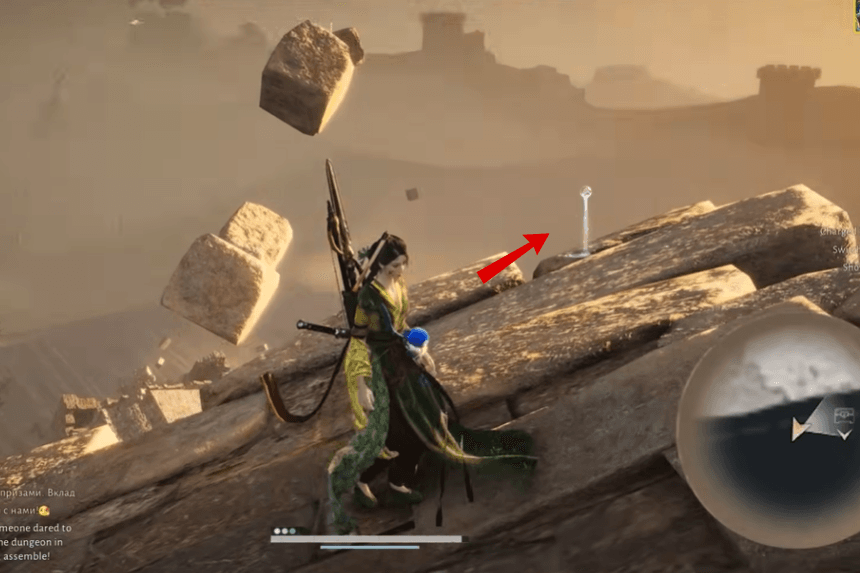 On top of a broken abandoned building, you will find an NPC. He will ask you to play a game. Win the game to complete the quest and collect your rewards.