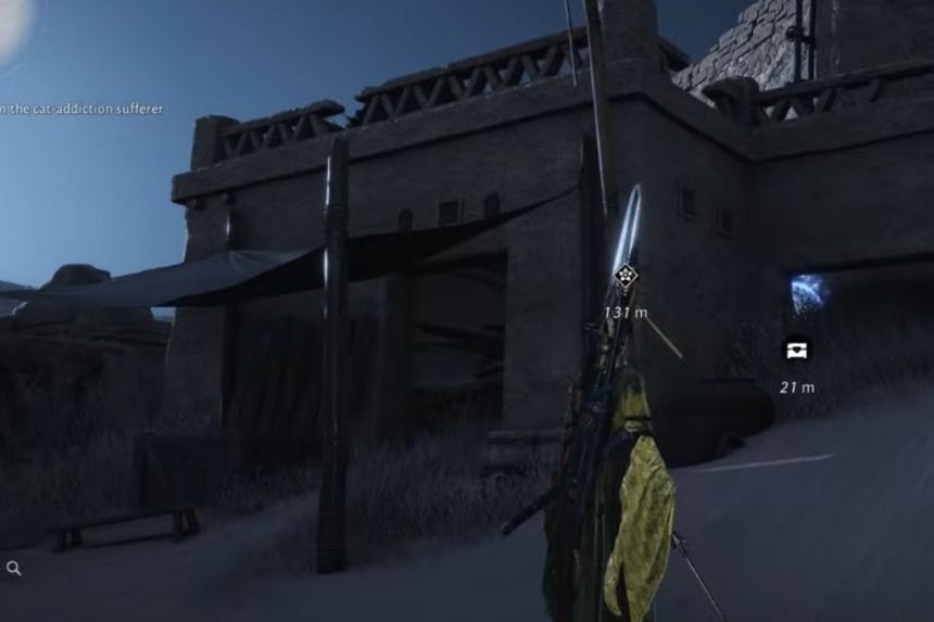 You can find this cat on the roof of a small building located southwest of the Squarewall Hold Ruins boundary stone.