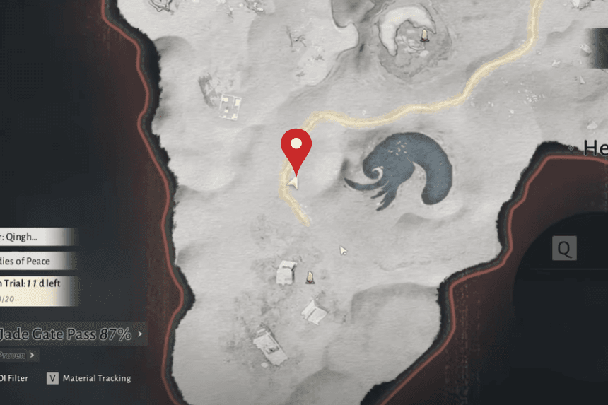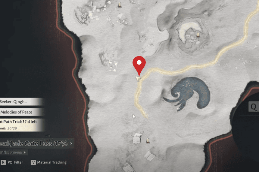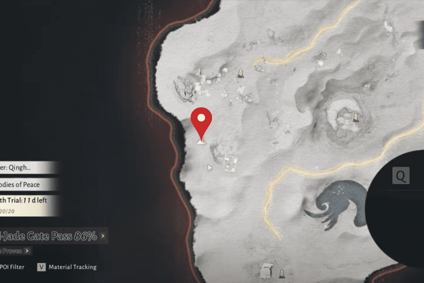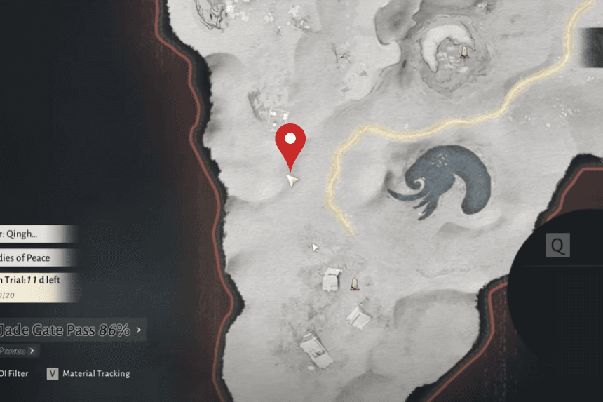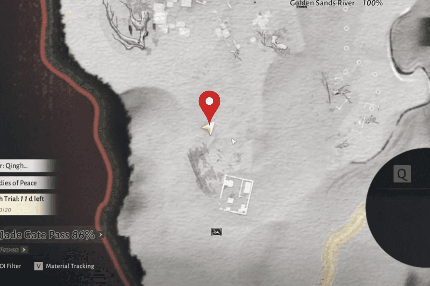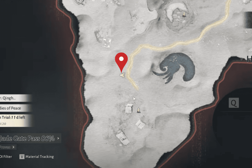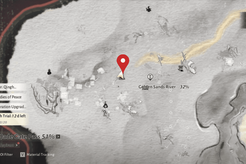 From the camp, go towards the big tree in front of you. In the middle of the desert, you will find the chest. Interact with it to get Jade Piece.