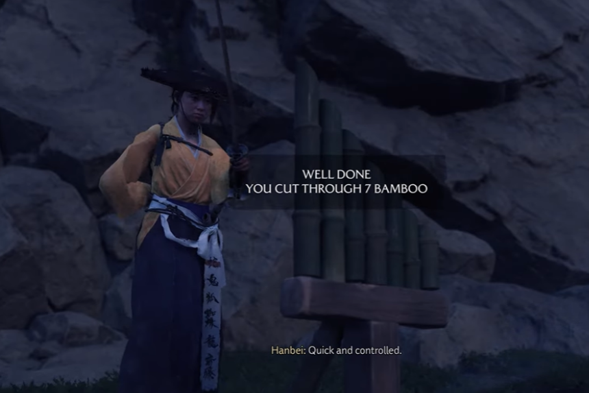 Huranui’s Rest Inn Bamboo Strike can be found just outside the inn, to the left of the building where some ronin are gathered. You will need to drink Sake before you can begin the challenge.