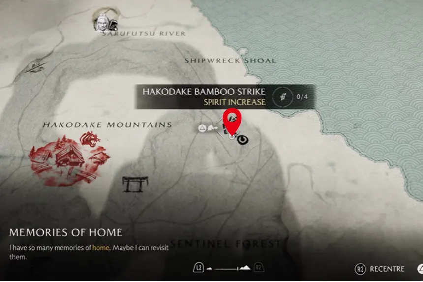 Hakodake Bamboo Strike is located just east of the Hakodake Mountains. Once you reach the above marked location, you will find a small house. From there take a left to reach the Hakodake Bamboo Strike.