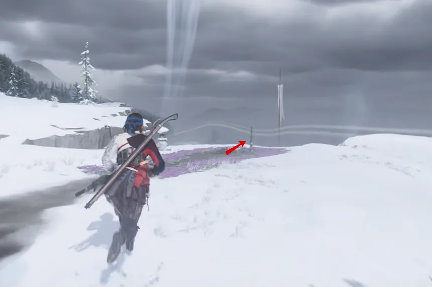 Niikappu’s Fork Bamboo Strike is located east of the Niikappu River. Reach the above marked location. You will find the Niikappu’s Fork Bamboo Strike just inside the forest area beside the trees.