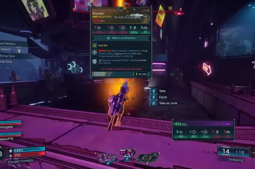 At Moxy’s Bar, players can unlock rare legendary weapons by donating $1,000 repeatedly. One notable example is the Cold Shoulder assault rifle, which features a quote directly from Home Alone 2: “You’ve been smooching with everybody.”