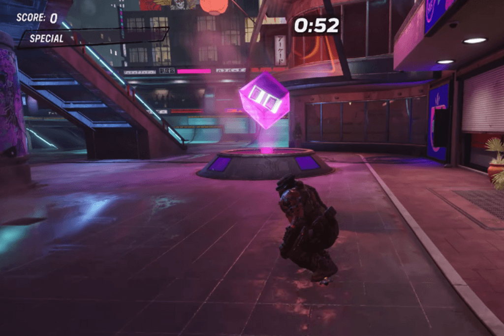 From where you start, head straight and stick to the right side of the level. Go all the way to the far end, and you’ll spot a hologram with a floating Cash icon inside. Skate right through it to collect the money.
