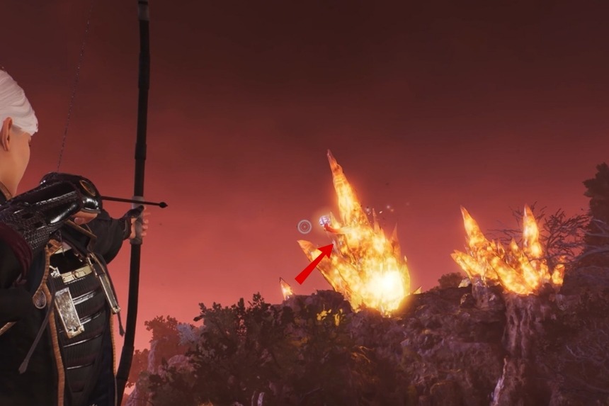 You will find this Chijiko northeast of the Juji Fortress East Shrine. There’s an Enemy Base near the shrine, which you can clear first if you want things to be easier. You can also head into the woods and get the Chijiko first, then come back to the base later. From the shrine area, climb up the rocky hill, and you will spot the Chijiko flying near a tree. Shoot it down, then pet the Chijiko after it lands. This unlocks Transformed Art – Crimson Lotus (Fire) and rewards you with 1 Ninja’s Locks.