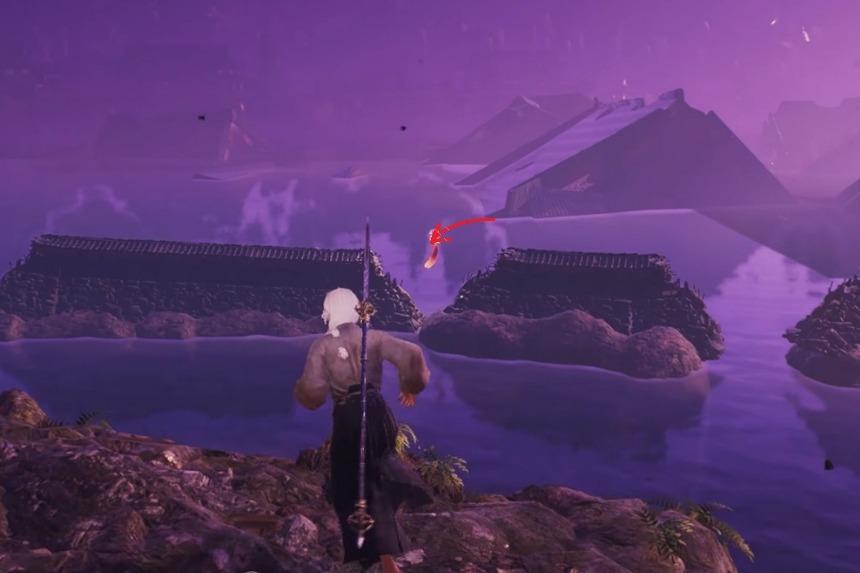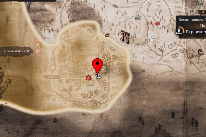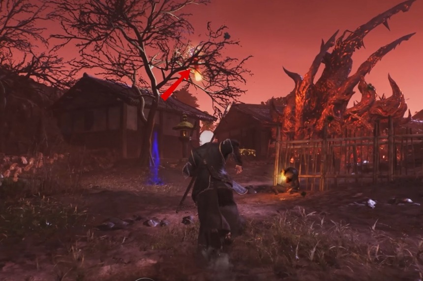 You will find this one flying around southwest of the Hamamatsu Post Shrine, close to a tree. When you get near, a message will pop up saying “Bells chiming in the sky… S’ppose some god is paying a visit.” Climb onto a nearby tree and shoot it down. Once it falls, pet the Chijiko. Doing this will unlock Transformed Art – Cloudspitter (Fire) and reward you with 1 Ninja’s Locks.