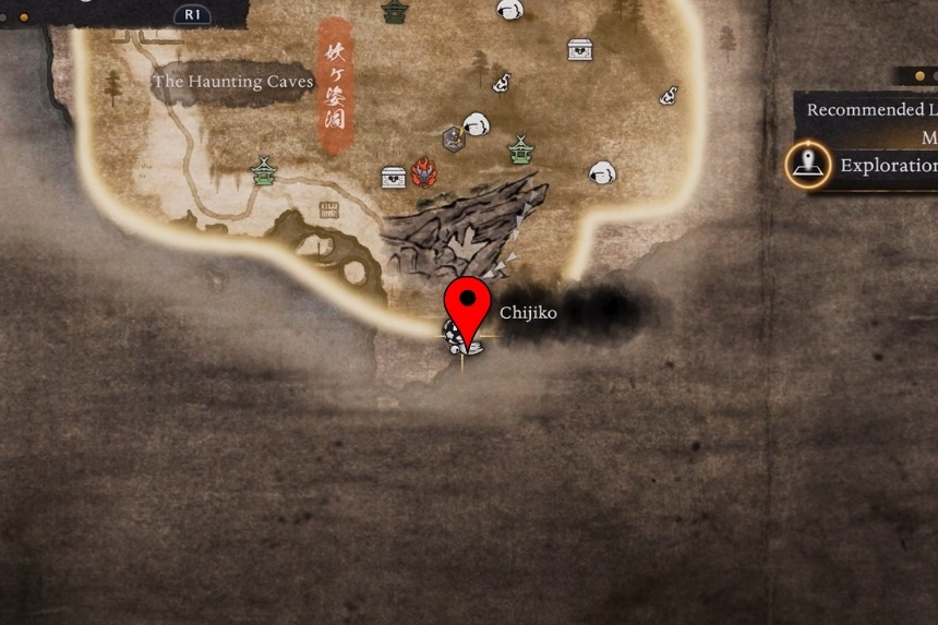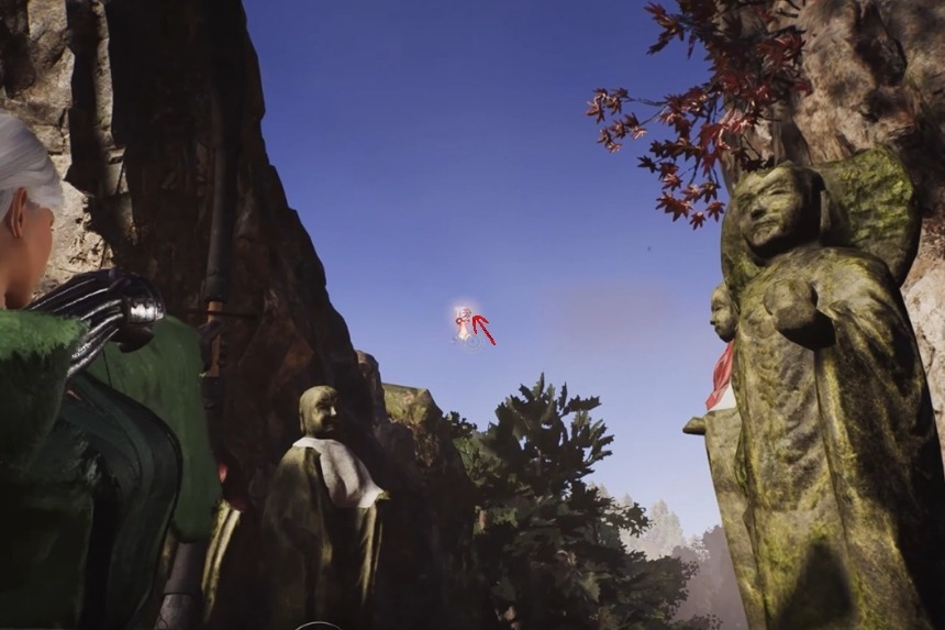 The Chijiko is on the right-hand path past the Otowa Stairs, up among some demonic rocks. Early along this path, you will spot the Kiyomizu Precipice Shrine. The Chijiko is flying below this area, so drop down from the rocks to the lower platform to reach it. Doing this also lets you unlock the Precipice Shrine, since there’s a Spirit Vein below that helps you get there.