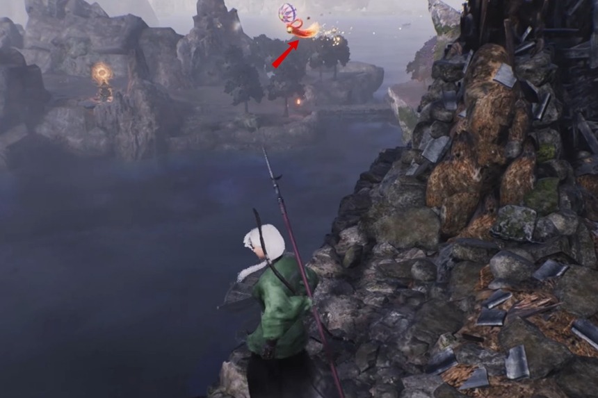 You will spot this Chijiko flying above the water near Otsuri Bridge. Head to the nearby cliffside, where you will have a clear view of it in the air. From there, shoot it down, then pet the Chijiko once it lands. This will unlock Transformed Art – Dragonfly Reversal (Pierce) and reward you with 1 Ninja’s Locks.