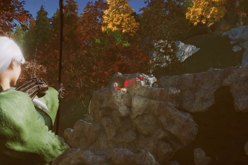 To find the Chijiko, start at the Anneibo Temple Shrine and head north. You will reach a swamp area with a large rock and an enemy standing on top of it. Take out the enemy first, once he’s gone, you will have a clear view and a good angle to spot and shoot the Chijiko.