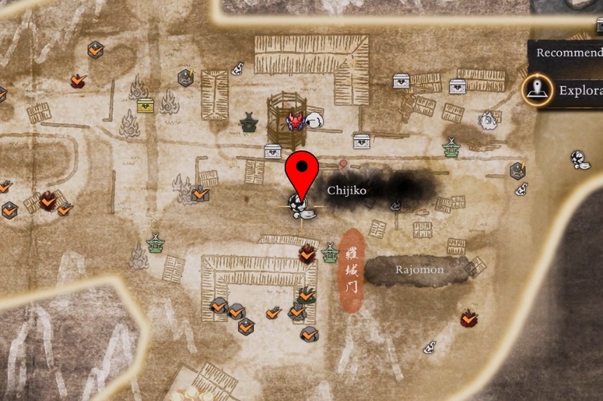 You can find the Chijiko in the northern part of the area, near the Nijo Castle Ruins Lake Shrine. From the shrine, turn around and use the Spirit Vein to reach the top of the temple. Once you’re up there, you will have a clear view, making it easy to spot and shoot down the Chijiko.