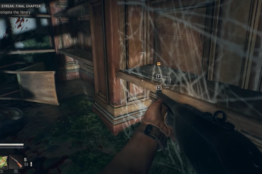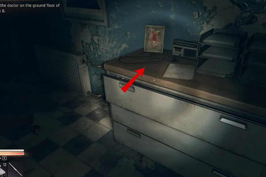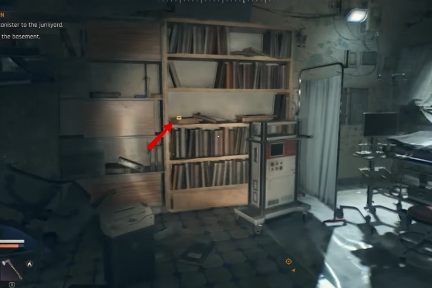 Go back to the asylum’s entrance. Take a left to find a small office with shelves. Search them to pick up Kurt’s file.