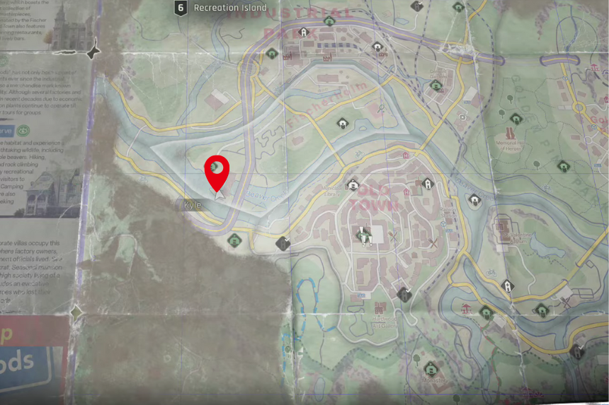 Head west from Old Town along the main road until you reach the Inn, a safe zone before the bridge to Recreational Island. If the Baron’s men are still around, clear them out first. Once it’s safe, go inside the diner, and you will find the recording sitting on a table.