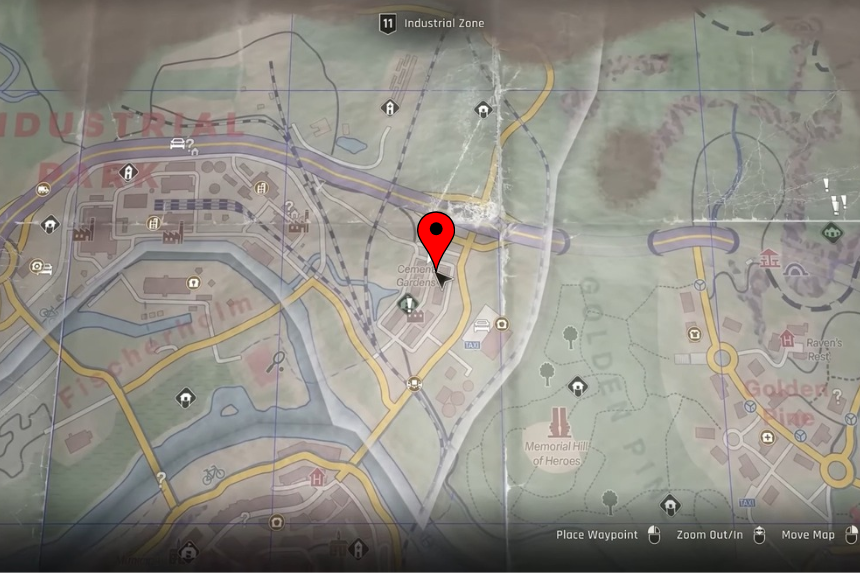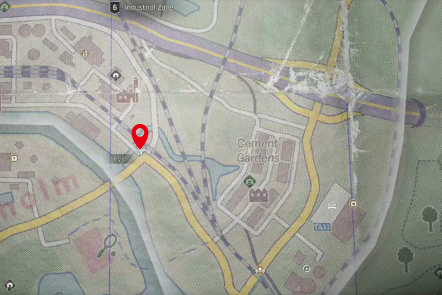 Head to the Cement Gardens area east of the Industrial Hub. Look for the cluster of three buildings on your map. In the southern-facing house, there’s a vent you can use to get inside. Restore the power in the house, then go through the door to find the recording sitting on a table.