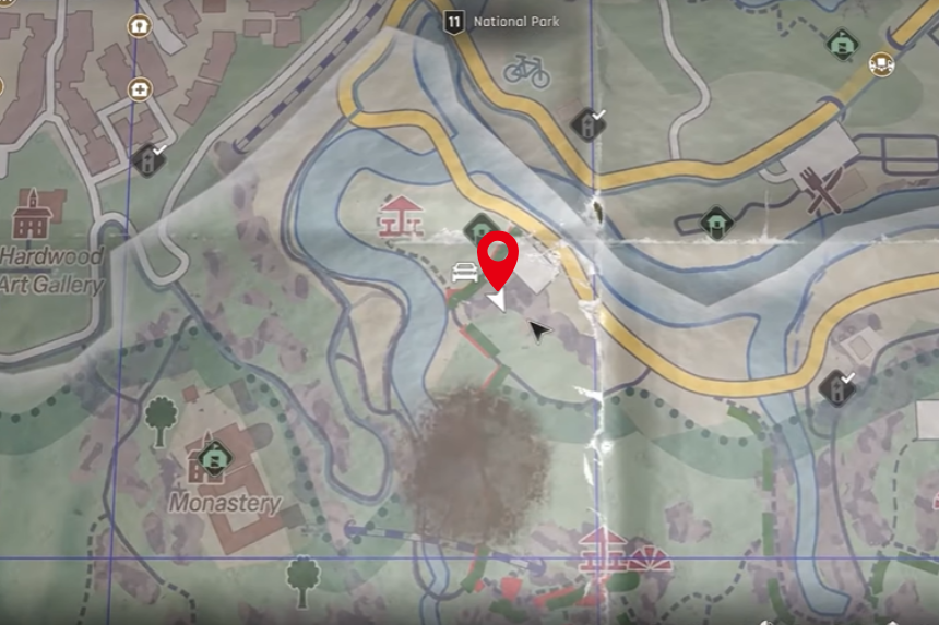 The last Sigil is also in the southern National Park, but a bit eastward, close to a Safe Zone. Head to the location marked on the map, and you will see a small cabin. Go inside, and you will find the Witch’s Mark Sigil stuck to the wall.