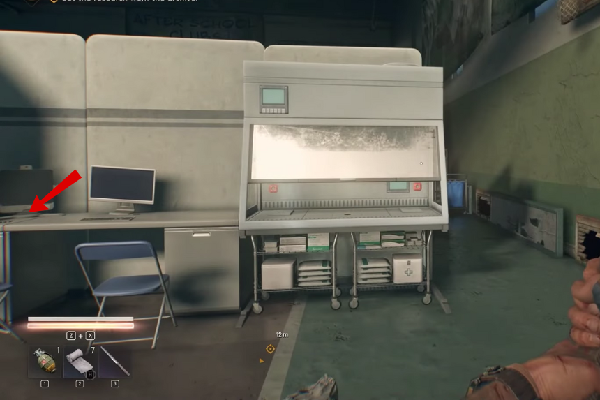 Lydia, found outside, gives you the quest. After speaking with her, regular zombies won’t attack for a short time, but infected can still detect you. Head inside and track down the files as you progress through the mission.
