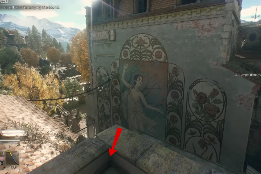 Go to the location provided on the map above. Climb up the roof. You will find A Satyr for a Nymph at the corner.