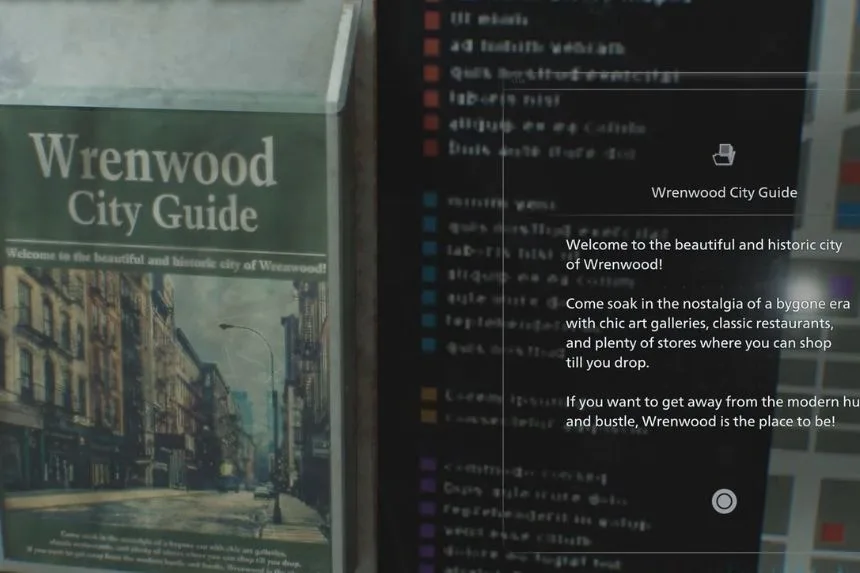As you walk through Wrenwood City, keep an eye on the City Map on the right side of your screen. It will help you navigate the streets and find important locations as you explore.