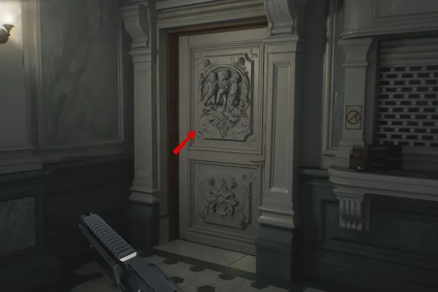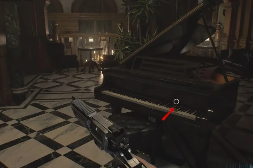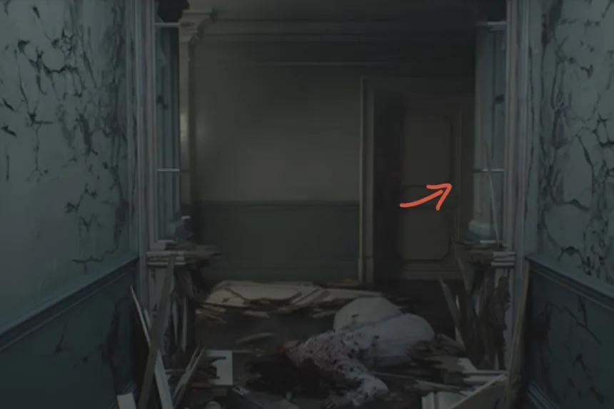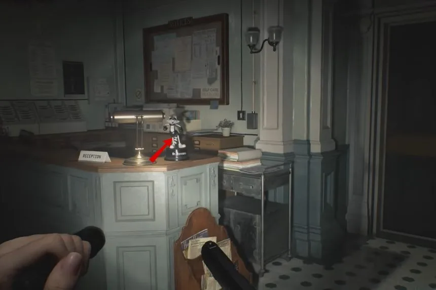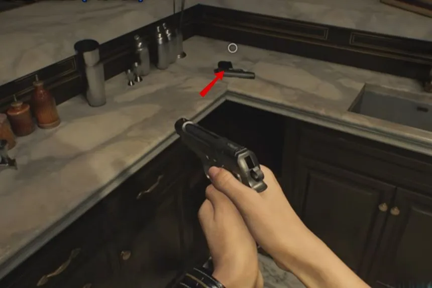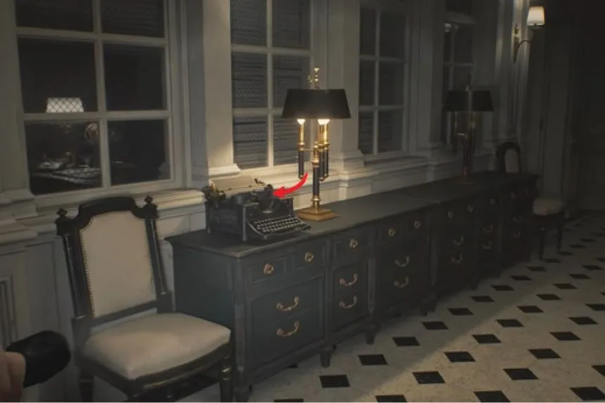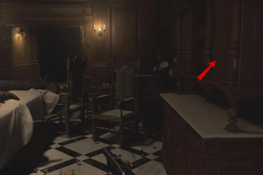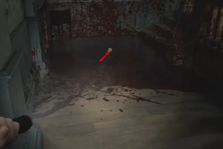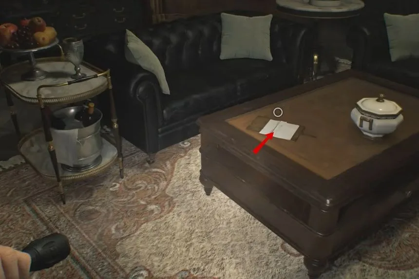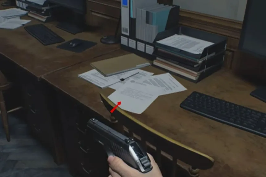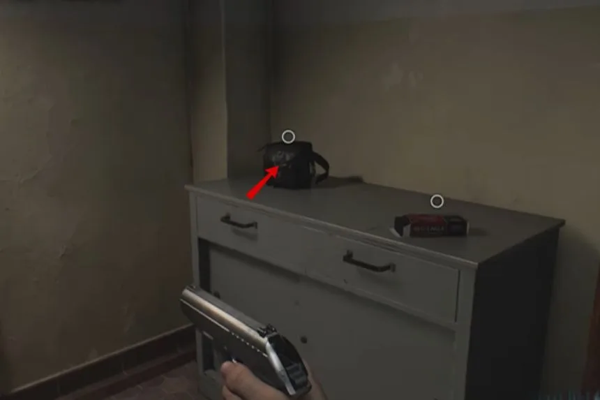 After passing through the kitchen, enter the Dining Room. On the floor, you’ll spot the B934 Pistol. This weapon will be useful for defending yourself against enemies in this section of the game.