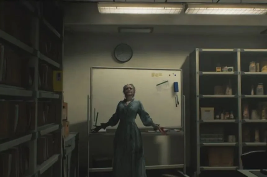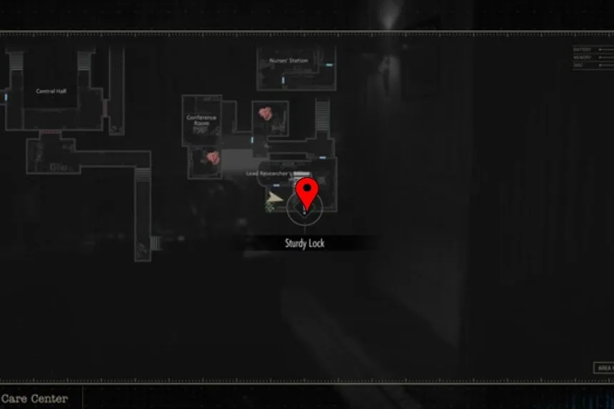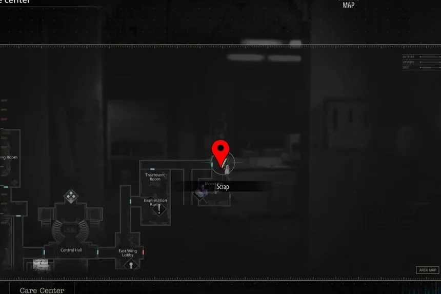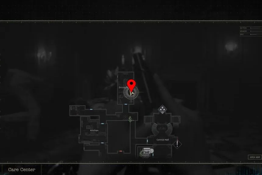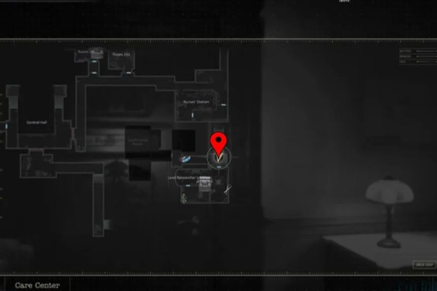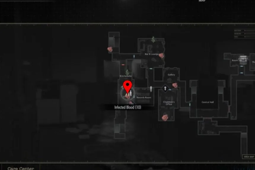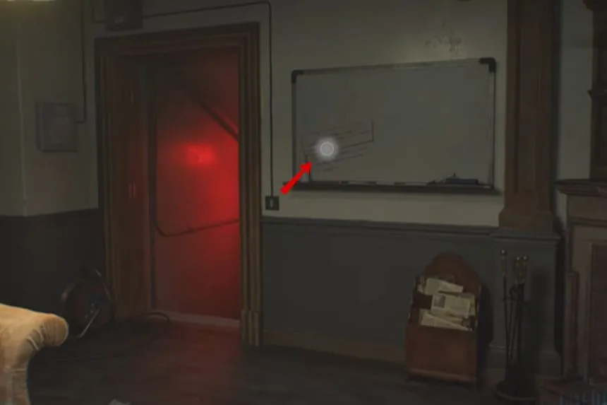 Before leaving the Safe Room, take a look at the whiteboard on the wall. Here, you will find the Whiteboard Scrawl, which gives clues and notes about what’s going on in the Care Centre.