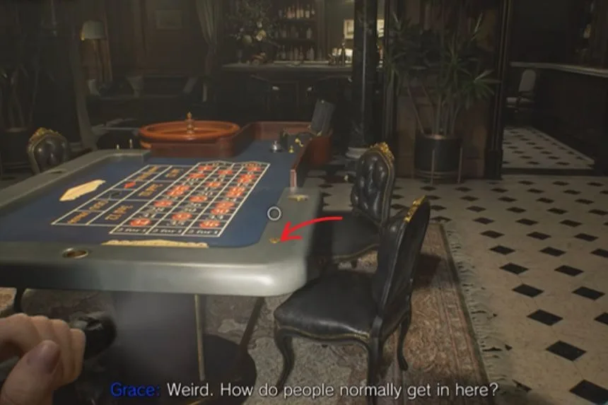 After going back downstairs through the West Wing, use the Red Jewel on the Parlor door to gain access. Inside, you’ll find Antique Coin #8 sitting on the Roulette table.