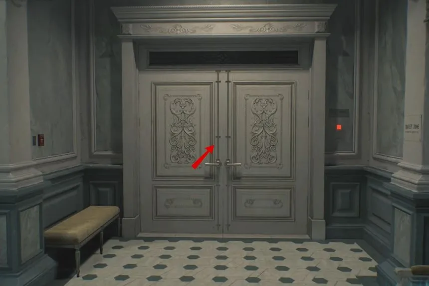 As you move through the Safe Room, head through the red-lit door, and you’ll automatically pick up the West Wing Keycard. You’ll use this keycard in the Central Hall to unlock the door to the West Wing, opening up a new area to explore.
