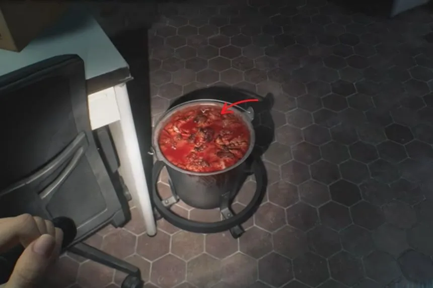 In the same Dining Room, check the left side behind the table. On the shelf, you’ll find an Empty Bottle. Pick it up and keep it with you, or store it safely—it will be required later to unlock the trophy “Internal Dispute.” Be careful not to throw it away!