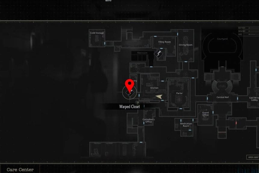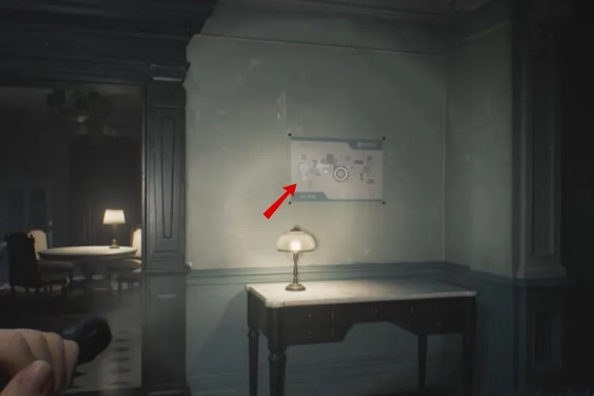 After climbing the first set of stairs in the West Wing, check the wall to find the West Wing Map. This map will help you navigate the new area and locate key rooms more easily.